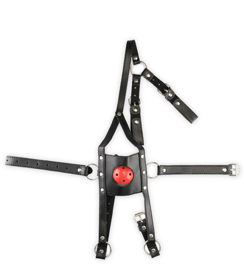 Silence your sub with the Leather face mask with ball gag!
