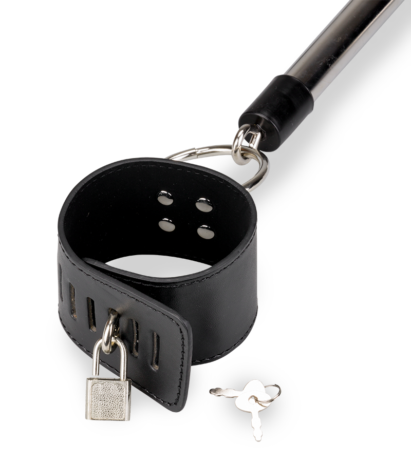 This BDSM cross-body restraint will your sub on their stomach or knees by restraining their wrists and ankles. Each restraint is equipped with a padlock. For the perfect session, silence your partner with a ball gag! This accessory comes with 4 padlocks and 4 sets of 2 keys. Each shackle is 11.75 inches long and 2.25 inches wide. The space between each shackle is 15.75 inches.