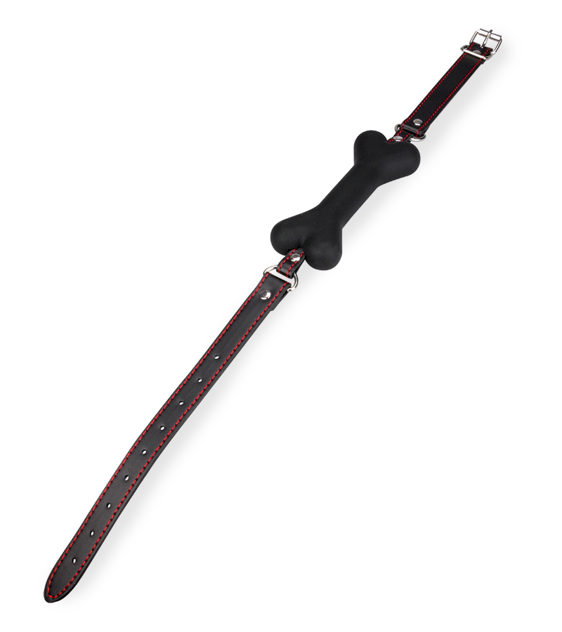 This gag has a unique design that lets you take on the role of an obedient dog. The bone is made of silicone so it's comfortable to hold between your teeth, while the faux leather strap is adjustable to fit all head sizes.