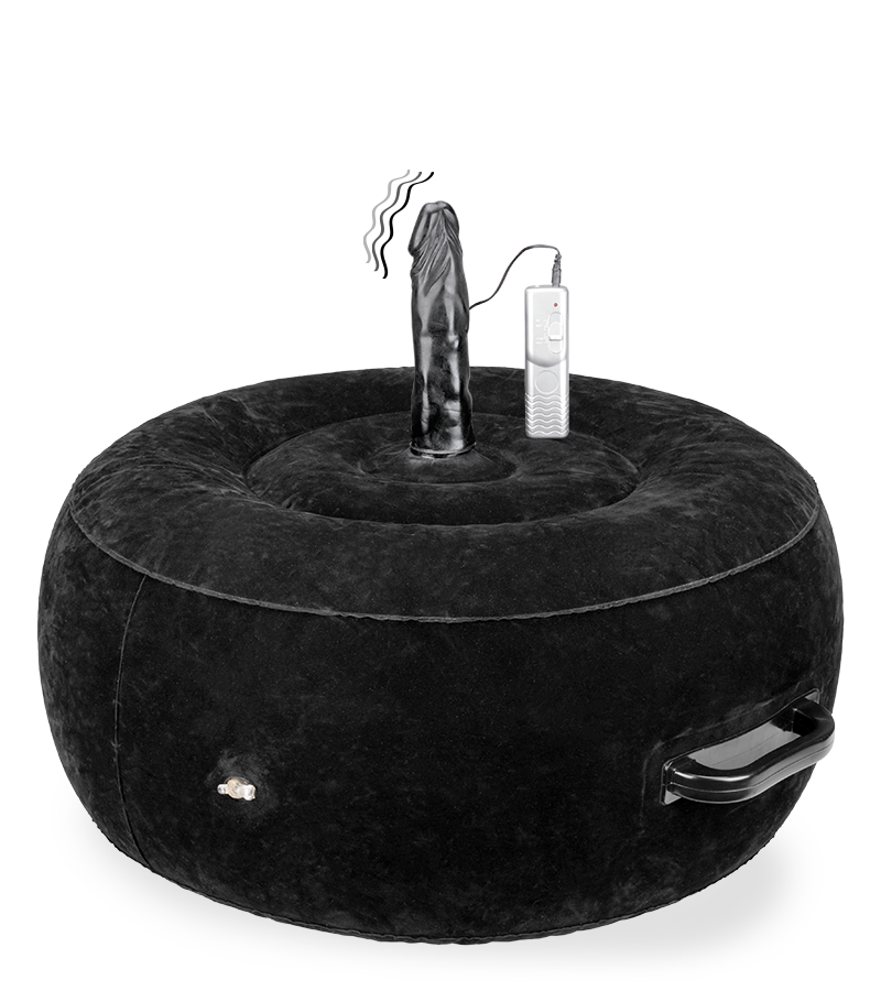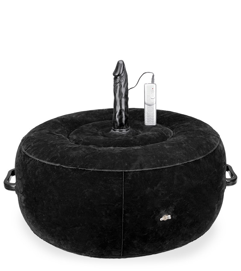 This round inflatable PVC pillow has two handles for the perfect grip. This pillow comes with a realistic vibrating dildo (with 3 speeds) in the centre of the pillow. You can mount the pillow to enjoy the dildo and then ride the dildo back and forth at the rhythm that best suits you.