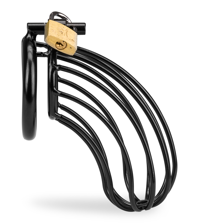 If you're having difficulty controlling your impulses or simply want to discover the pleasures of frustration, this cage is for you. Its curved shape will prevent full erections and make them particularly uncomfortable. You can wear for long periods of time thanks to its thin bars, which allow good ventilation and will allow you to urinate without taking off the cage. This long model is perfect for men who have a large penis while flaccid.