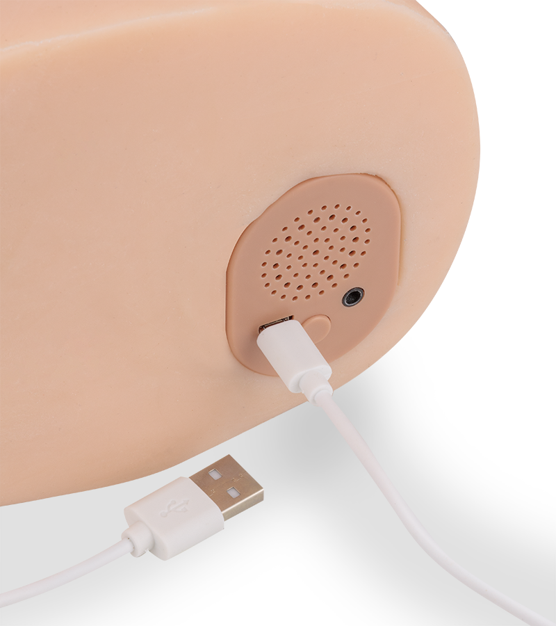 The ass measures 11.75 inches in length and 11.75 inches in width. The vaginal depth is 6.25 inches and the anus is 3.5 inches deep. A USB cable is included for charging