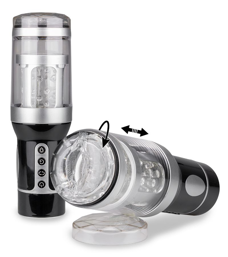 1. Separate the capsule with the sleeve from the rest of the sex toy. To do this, simply unscrew the transparent part of the black base. To unscrew the transparent capsule, turn from left to right.