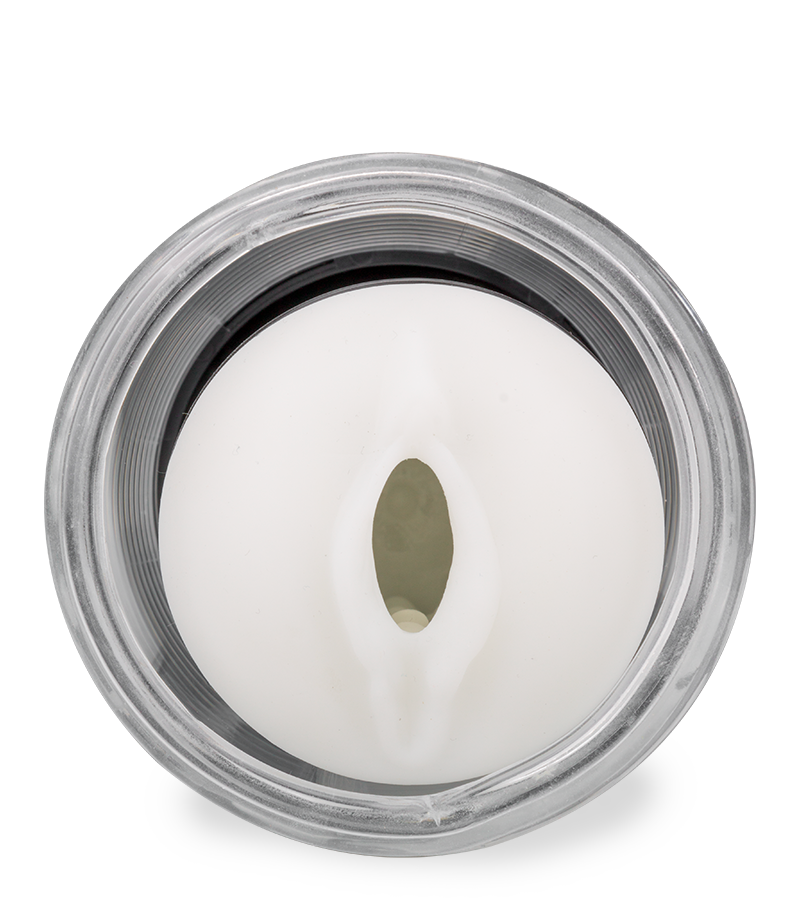 The textured silicone sleeve feels just like a real vagina.