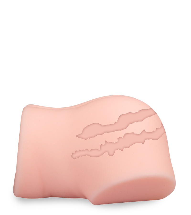 The Melody small ass and vagina is 7.25 inches long and 8.25 inches wide, and weighs 4.50 lb, which makes it easier to handle than a larger artificial ass. Just like a larger ass, you'll enjoy kneading her beautiful, voluptuous curves and exploring her two orifices, which have different depths and textures. The vaginal orifice is 5.00 inches deep and has a nubby texture, while the anal orifice is 4.75 inches deep and a little tighter and has ribbing for realistic sensations.
