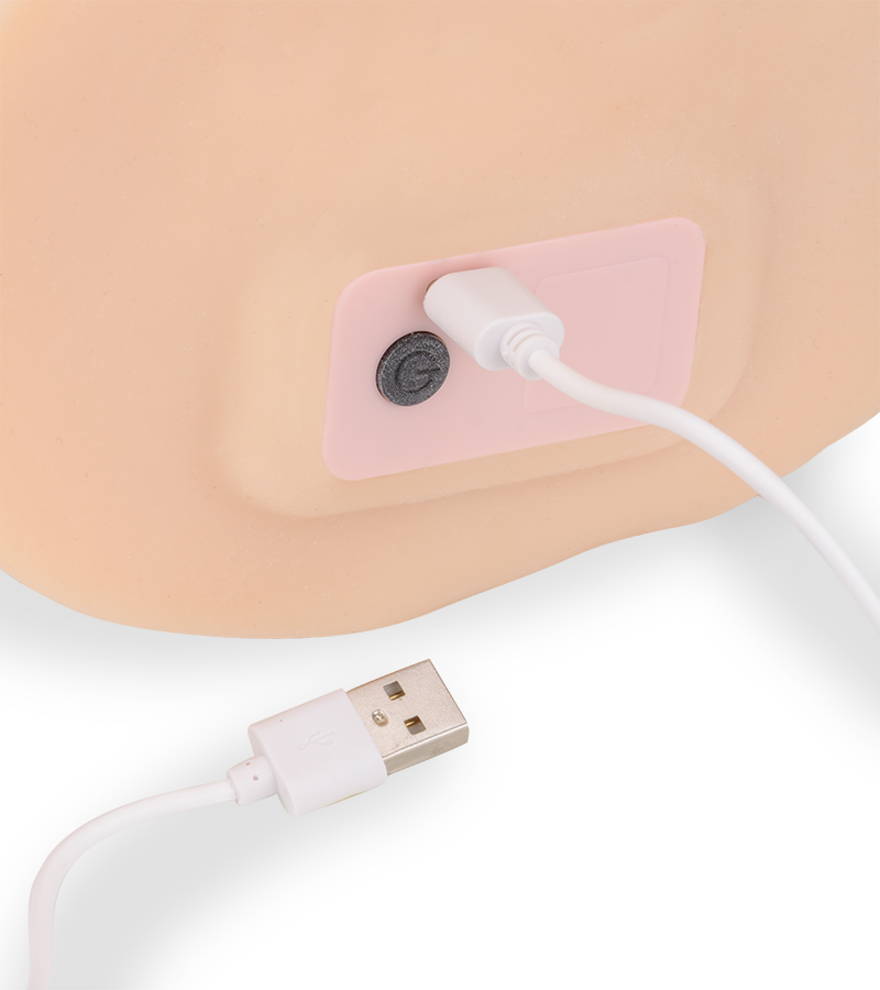 The ass measures 9.50 inches in length and 11.75 inches in width. The vagina is 5.50 inches deep and the anus is 5.25 inches deep. To recharge the battery, a magnetic USB cable is included.