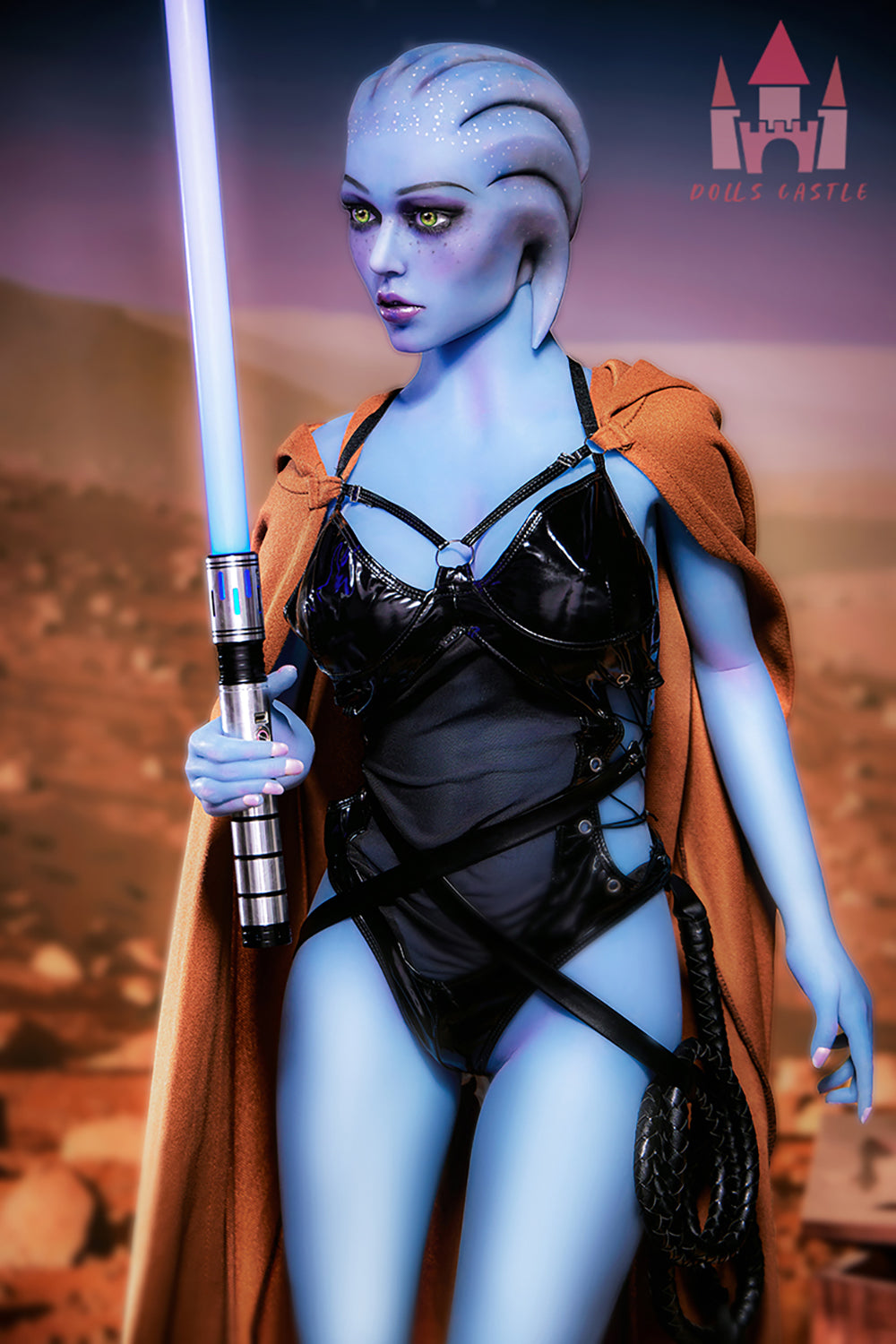 1. Odette is a unique fantasy sex doll with light blue skin. She features with medium breasts and a curvaceous body. the captivating eyes and soft facial contours make her stand out as an exotic and mystical character.
