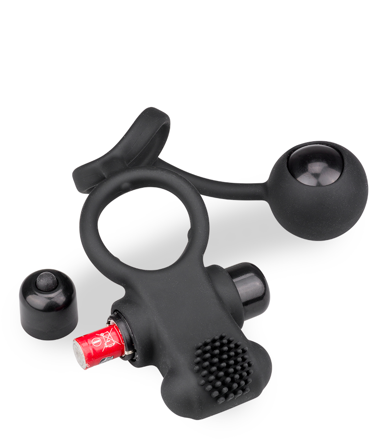 Couples will love this vibrating double cock ring, as it offers triple stimulation: for the penis, clitoris, and anus. The first flexible cock ring has a 1.25-inch diameter and will wrap around his penis, while another, slightly tighter ring (also flexible), with a 1.00-inch diameter fits around the testicles. Both rings are linked to a powerful vibrating bullet, enhanced with soft pleasure nubs to titillate her clitoris. At the other end of this penis ring, you'll find an anal bead with a 1.25-inch diameter designed to stimulate your anal walls. This ring is made of flexible silicone, so it will adapt to any penis size. Choose from 10 different amazing modes!